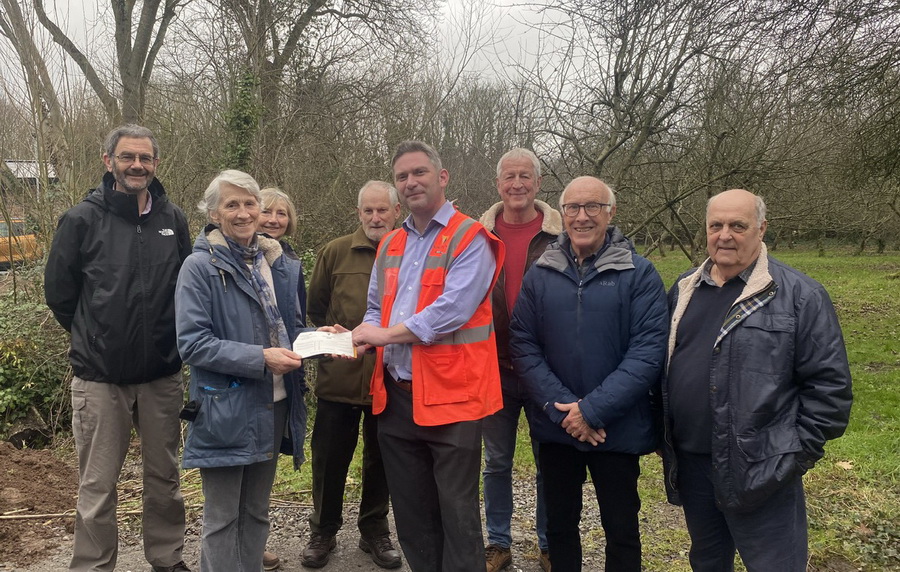 The Woodcutters receive a donation of £1000 from the construction company Willmott Dixon at Baytree School in appreciation and support of their ongoing work to enhance the natural environment in sites across Clevedon.