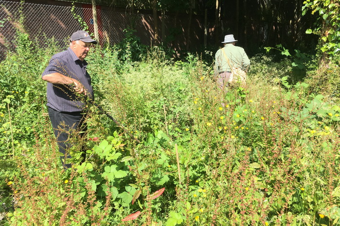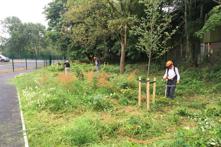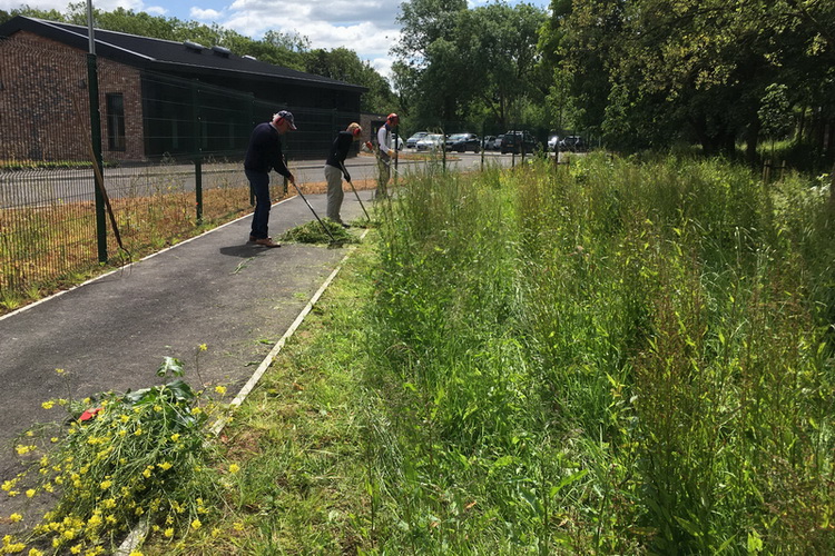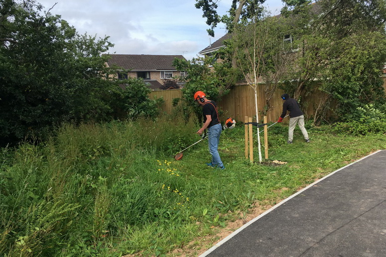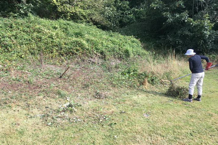 Brush-cutting a further section of the community area beside Baytree School