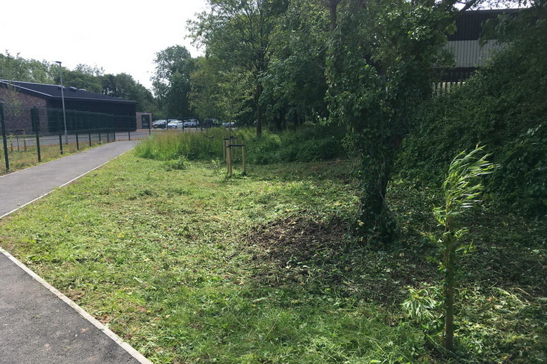 Dial Hill – a section of rough grassland brush-cut & raked off and brambles cut back to preserve semi-natural grassland and promote species diversity
