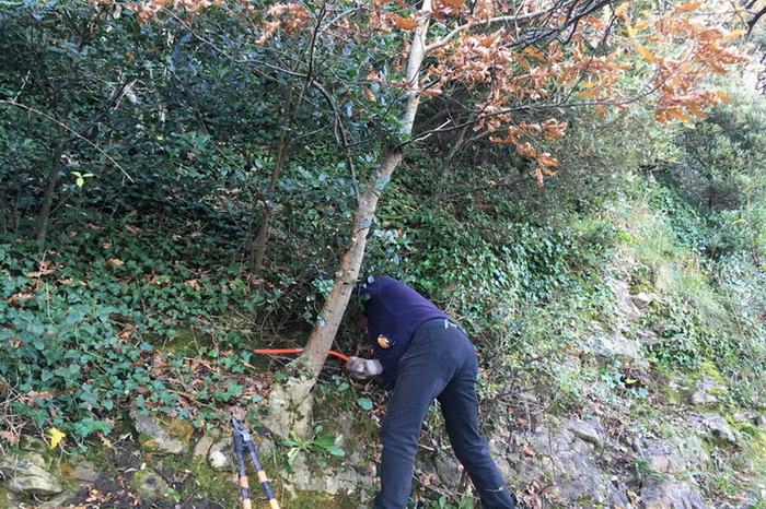 Poets’ Walk – cutting out invasive, non-native Holm oak and Turkey oak. Seaward-side vegetation trimmed back opposite the seats to improve views towards Wales.