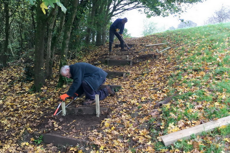 Refurbishing a flight of woodland steps behind the cricket club on Dial Hill.