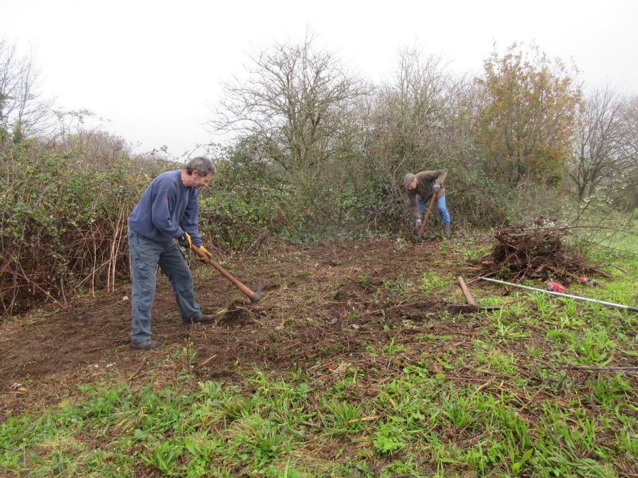 planting Sweet Briar (Rosa rubiginosa) in the hedge