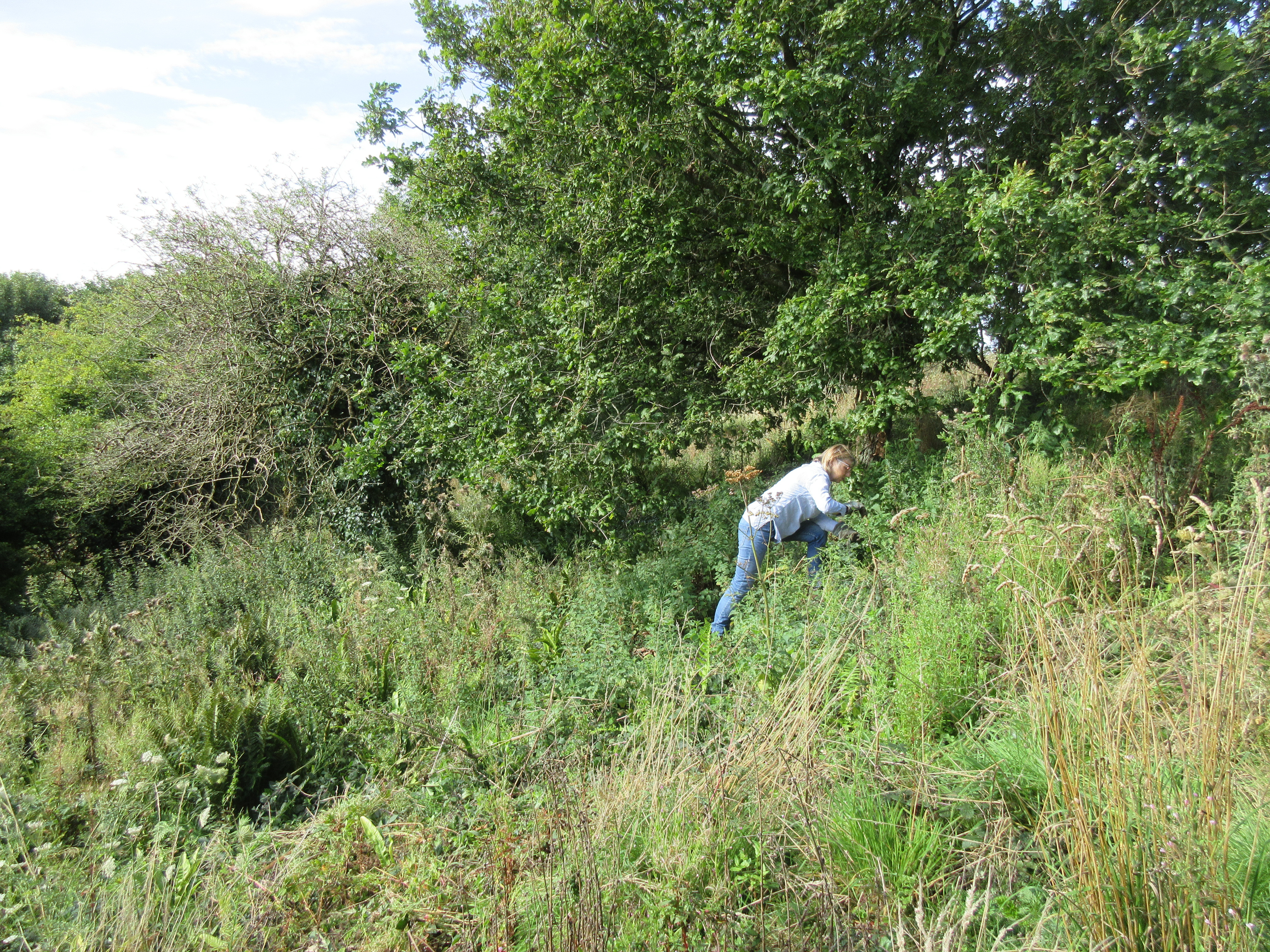 pulling problem plants such as horseweed, nettles and thistles from grassland