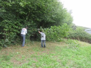 Dial Hill – tidying and opening up the area nearest the cricket pitch. The remains of a stone boundary wall here are obscured and protected by ivy and other vegetation.