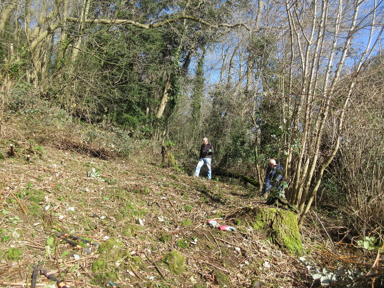 brambles cleared to allow light to the woodland floor