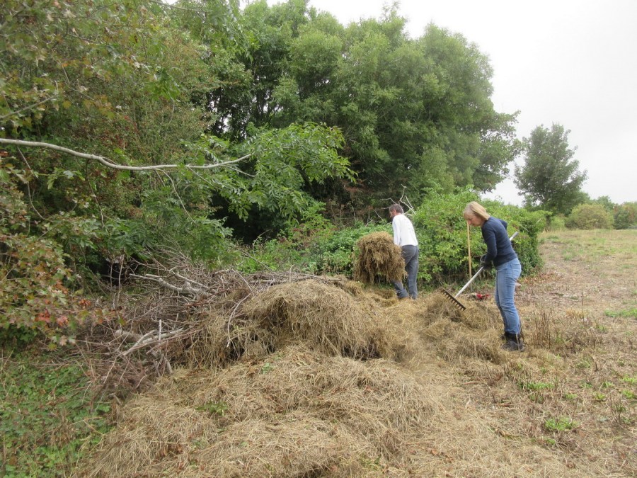 moving cut grass out of sight
