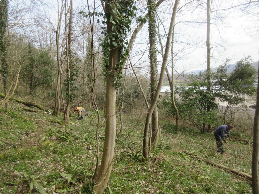 trimming back brambles along an earlier informal trail
