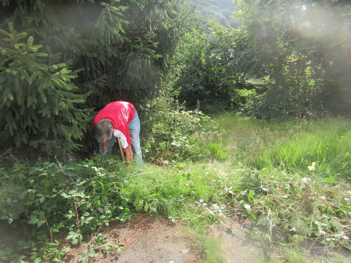 cutting back encroaching brambles