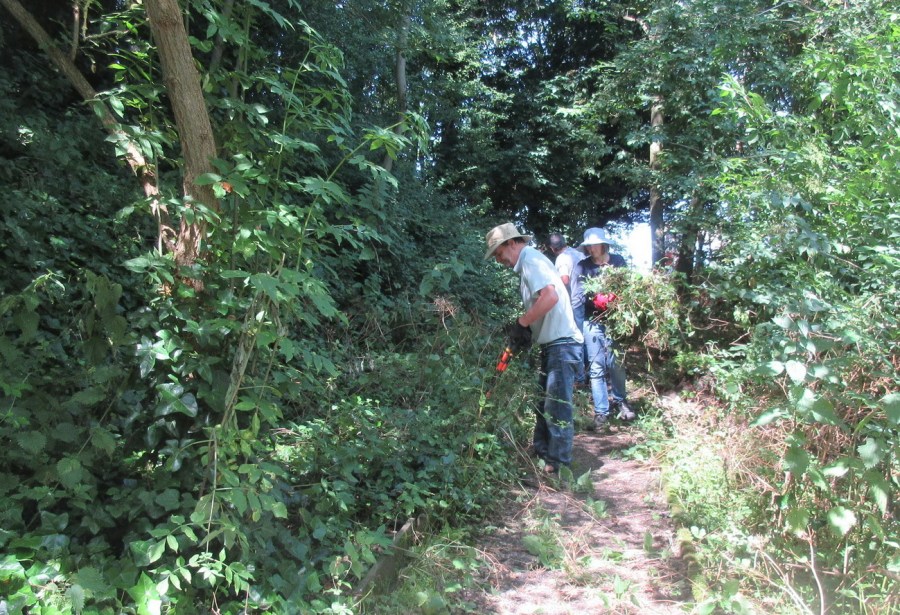 pulling nettles and cutting back vegetation along the path to the Lookout