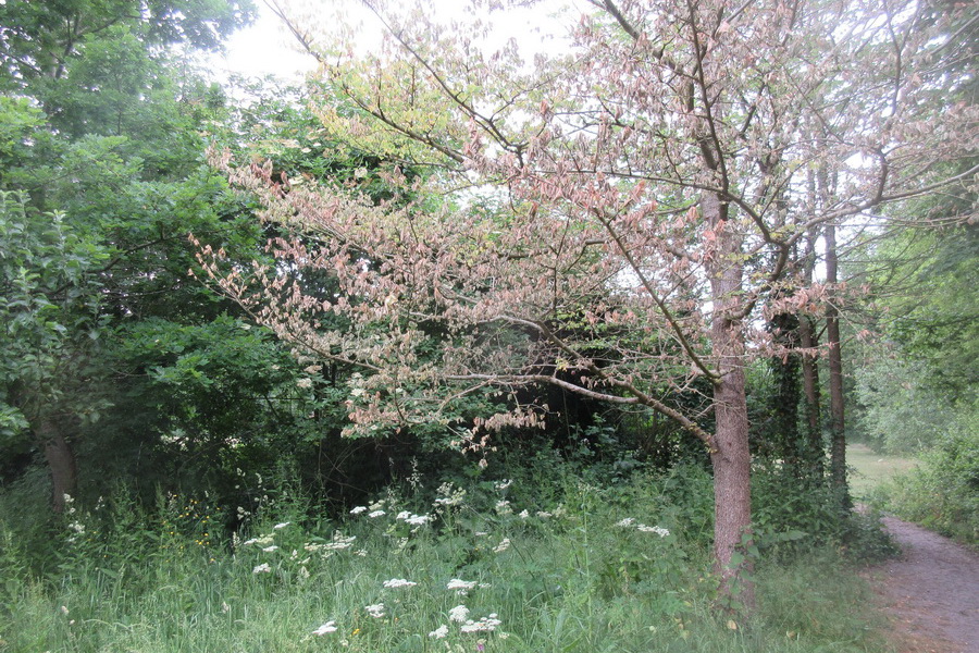 an elm tree has died, propably due to Dutch Elm disease and prolonged hot, dry weather