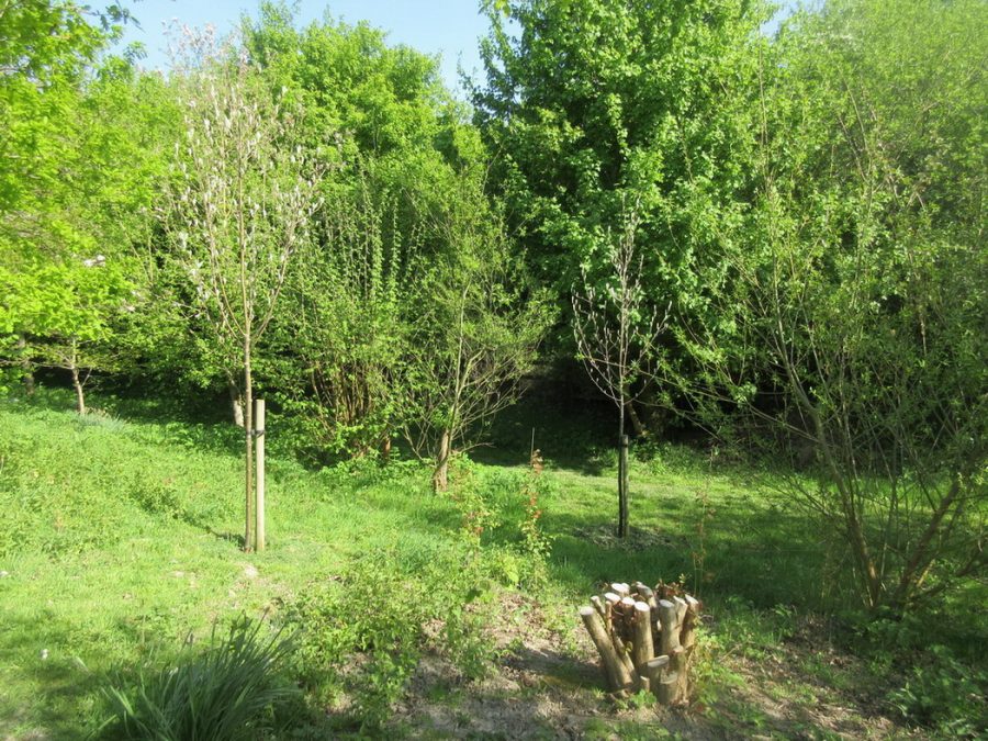 coppiced hazel and 2 young whitebeams