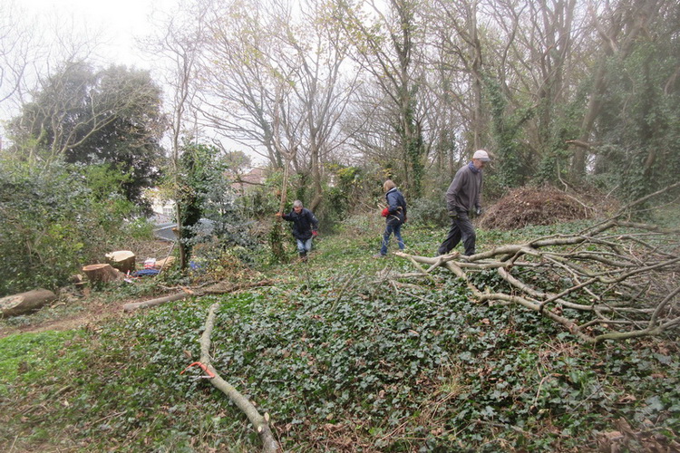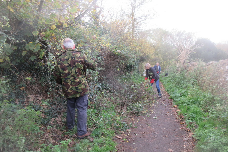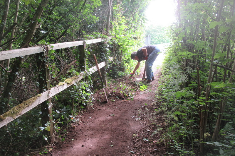 Clearing the public footpath near Quinney’s Wood of accumulated soil, weeds & ivy roots