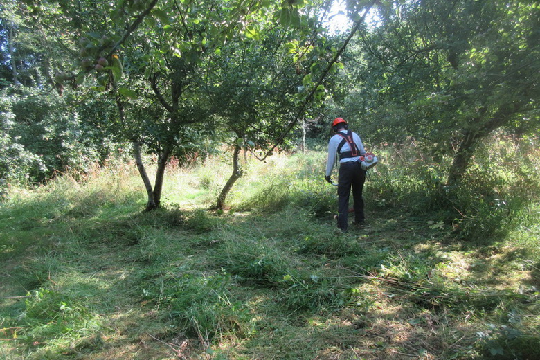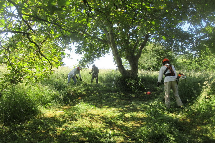 Summer mowing & raking in the Millennium Orchard to enhance the grassland