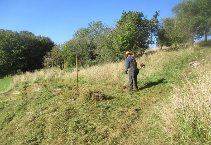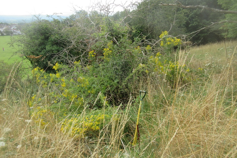 Poets’ Walk – cutting back overgrown blackthorn along the middle formal path. Another steep section on Church Hill is mown and ready for raking off to promote good grassland.