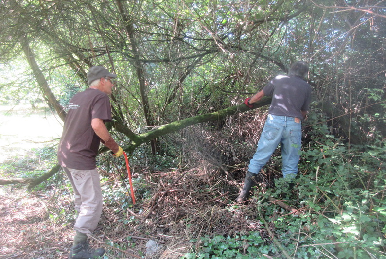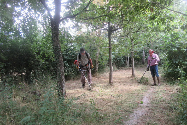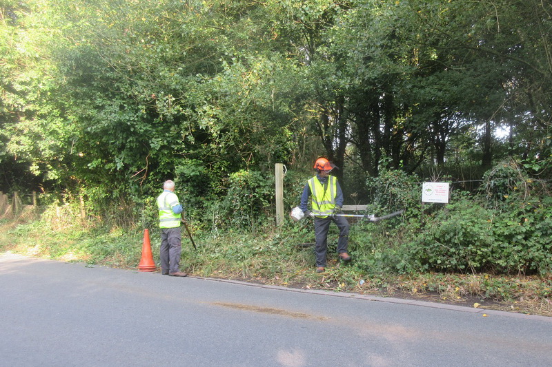 Quinney’s Wood – late summer mowing and improving roadside visibility at the stile. Late summer mowing starts on Dial Hill.