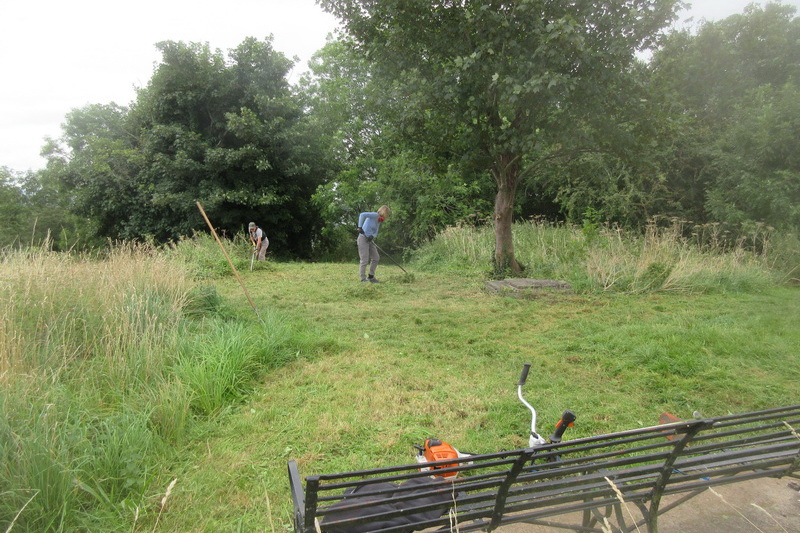 The paths on Dial Hill (normally cut by a NSC contractor) are mown this year by the Woodcutters. Second flushes of ragwort & everlasting pea are pulled and non-native yellow rod grubbed out. The top of the proposed viewing corridor is mown again.