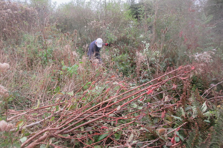 Dial Hill – cutting up and clearing away brash left by the contractor, to create habitat piles
