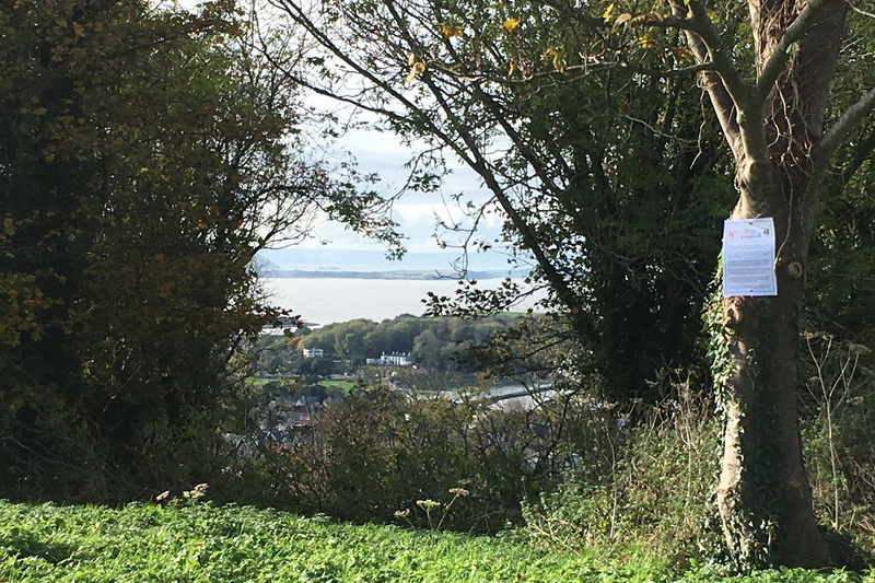 Dial Hill – the felling of two trees by contractor to restore a view over Clevedon Bay and beyond gets under way. Meanwhile, volunteers prepare planting holes for four new trees.