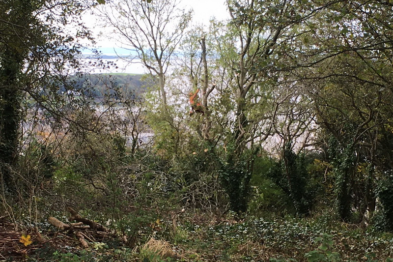 Church Hill, Poets’ Walk – thinning out self-seeded sycamore saplings to enhance a glade, and a view from the hilltop. A rope is attached to a tree to ensure it falls correctly.