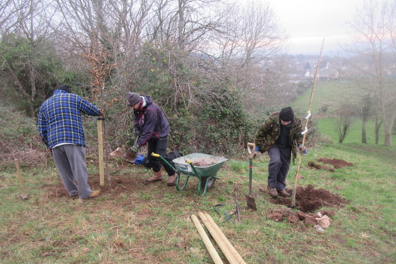 Clevedon Business Improvement District (BID) have paid for two new native trees on Dial Hill and the Woodcutters for two more, all planted by the Woodcutters on 22 December.