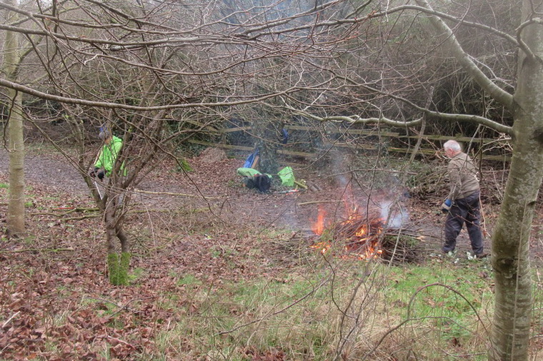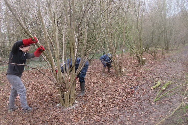 Hazel coppicing in Quinney’s Wood. Logs are saved as firewood & brash is burnt on site.