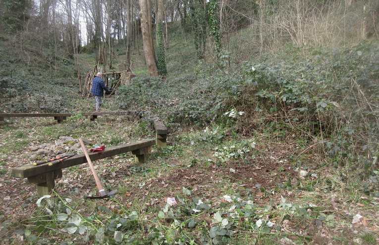 Clevedon School – cutting back & grubbing out brambles from the seating area & along the trail to restore access after missing last year’s working parties due to Covid restrictions