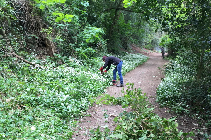 Poets’ Walk – with young helpers, cutting back spring growth along the path to Wain’s Hill and restoring access along the informal path behind the Town Cemetery Allotments