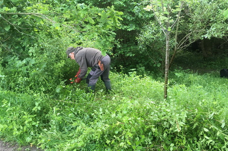 Two steep slopes on Poets’ Walk are mown in autumn to improve the grassland. Nearby, the half-term team trim brambles and assist in the removal of a few sycamore saplings.