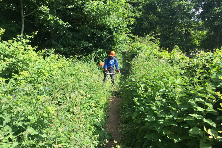 Dial Hill – mowing & raking to control bramble, feral raspberry & lilac shoots in grassland and to control nettles at the viewpoint; clearing brambles along an informal trail