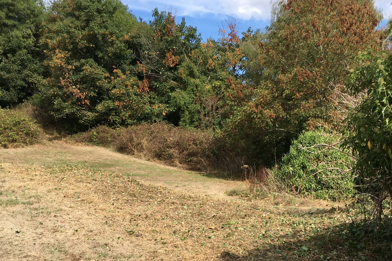 dried-grass-mulch-applied-around-the-new-trees-after-mowing-the-area