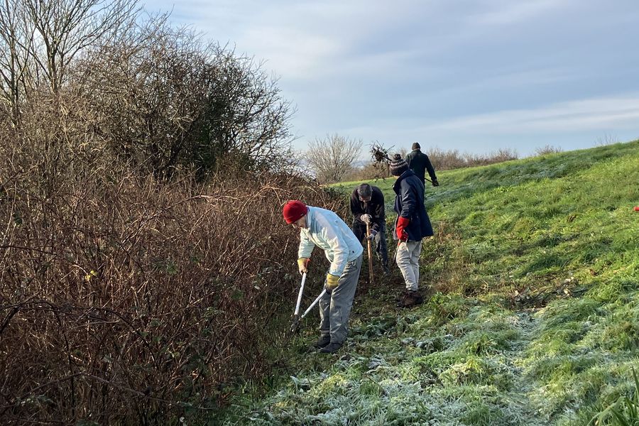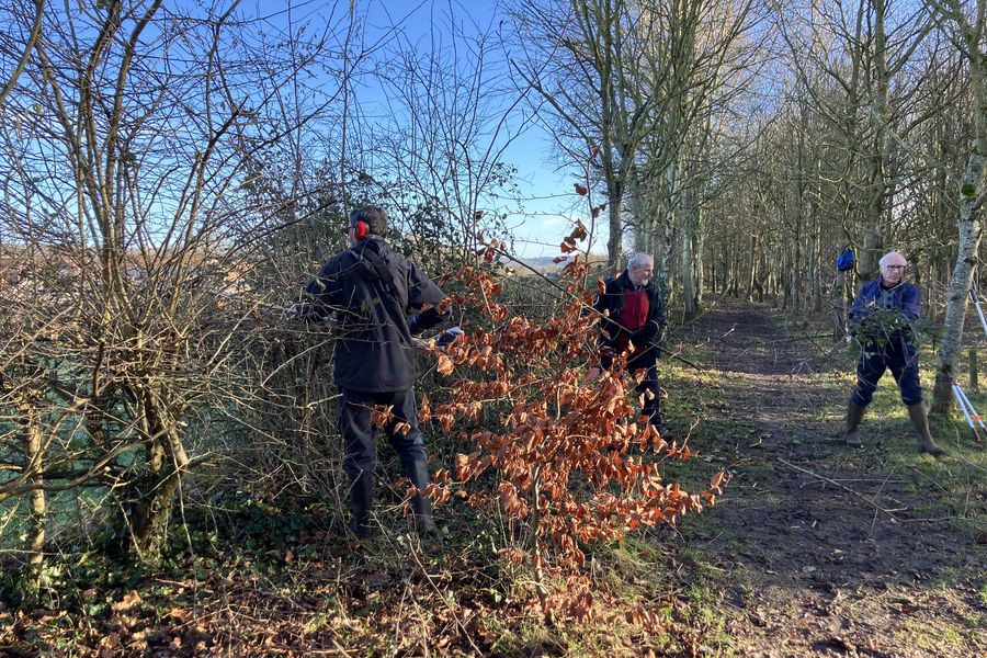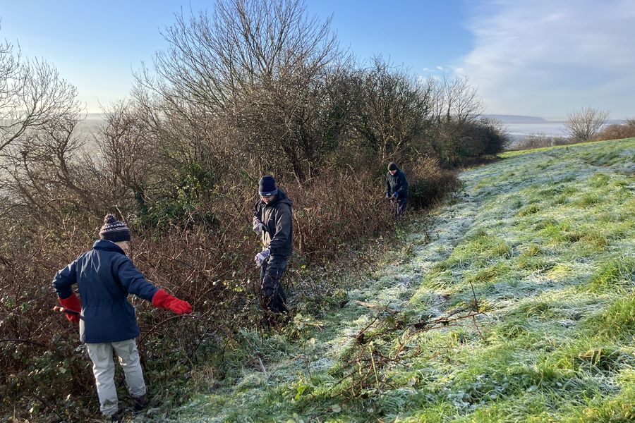 Poets’ Walk on a frosty, sunny morning – reducing a large bramble patch on Church Hill