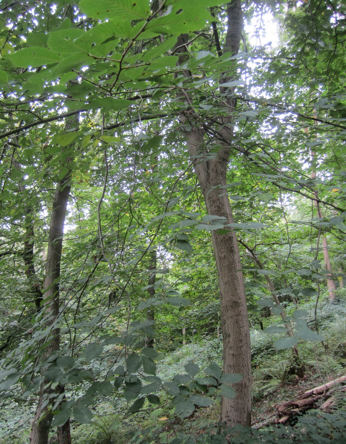 Wych Elm trunk and foliage in September